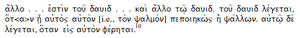 With regard to the OG, Pietersma says, "though the translator of Psalms consistently rendered לדוד by τῷ Δαυιδ, in the process of textual transmission the latter was frequently changed to τοῦ Δαυιδ, in an apparent effort to clarify Davidic authorship."[9] The quote by Didymus the Blind shows how, by the fourth century, the genitive in distinction from the dative was understood to mean Davidic authorship.