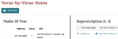 Our Verse-by-Verse notes arrange the findings from our various analysis layers into a single flowing commentary for the psalm. This commentary walks you through the psalm in detail, section by section and verse by verse.